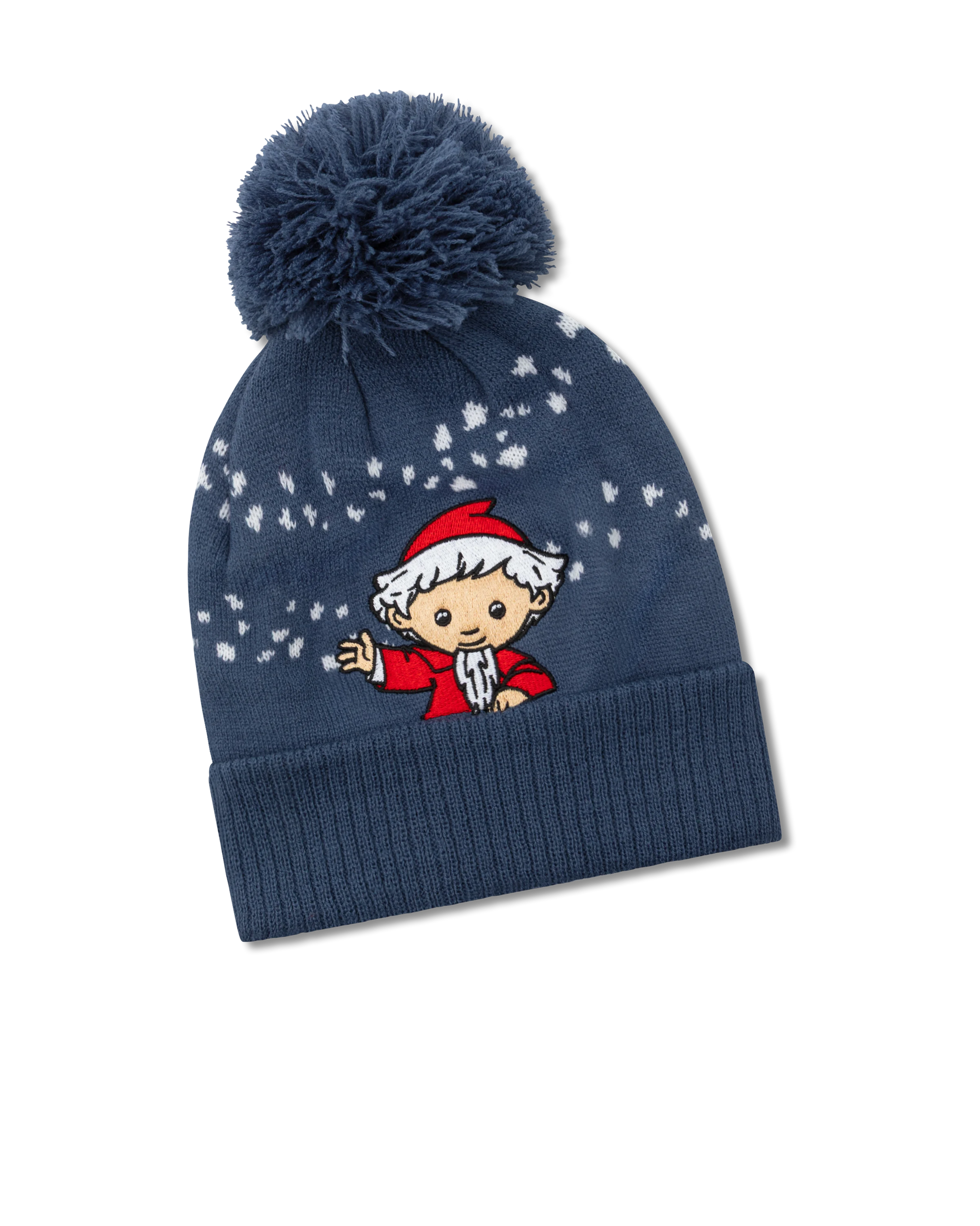 This enchanting koaa pom-pom hat whisks little dreamers away to bedtime stories. The Sandman takes center stage, his figure intricately embroidered on the front. The deep blue hat represents the night sky, adorned with numerous white stars. On the back, an embroidered moon and more stars complete the captivating night sky motif. A matching, fluffy blue pom-pom finishes the design.