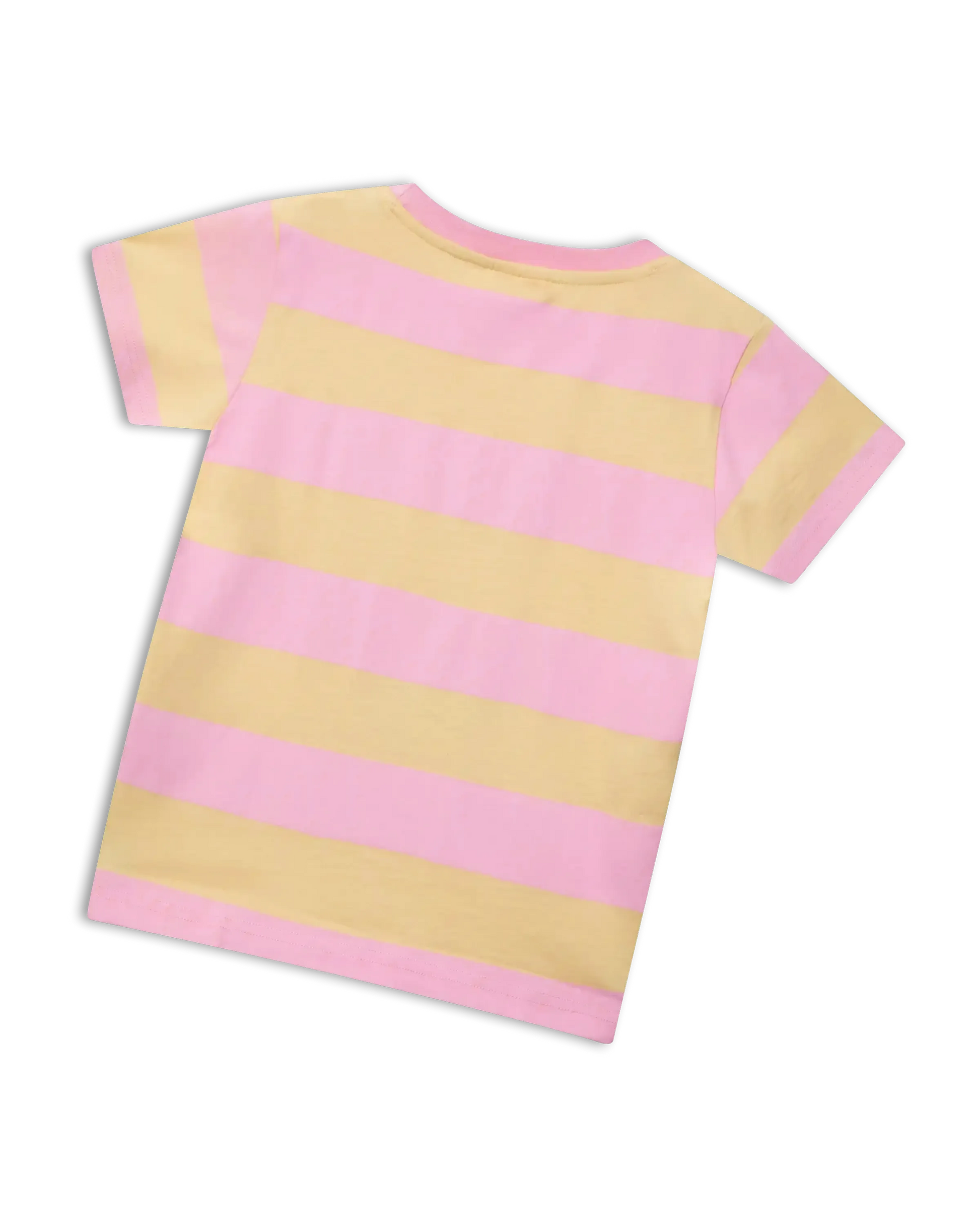 Ce t-shirt estival Maya l'abeille pour enfants apporte une touche estivale ! Maya, qui fait coucou, est mise en valeur au milieu de rayures roses et jaunes. Le design est sublimé par des bords-côtes roses.