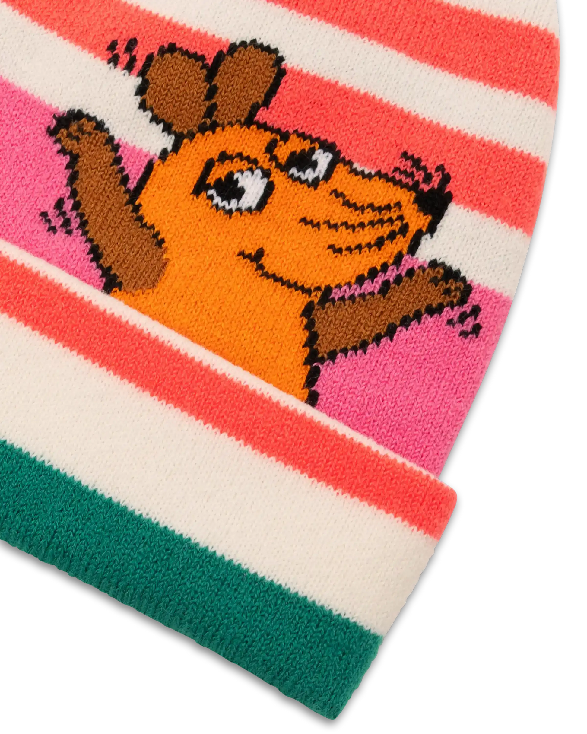Coloré, doux et plein de charme souris – le bonnet à cache-cache avec souris tissée et son joyeux look à rayures multicolores offre une coupe chaude et confortable pour les journées fraîches grâce à son mélange de matières douces et extensibles.