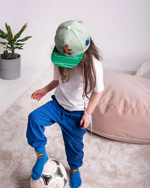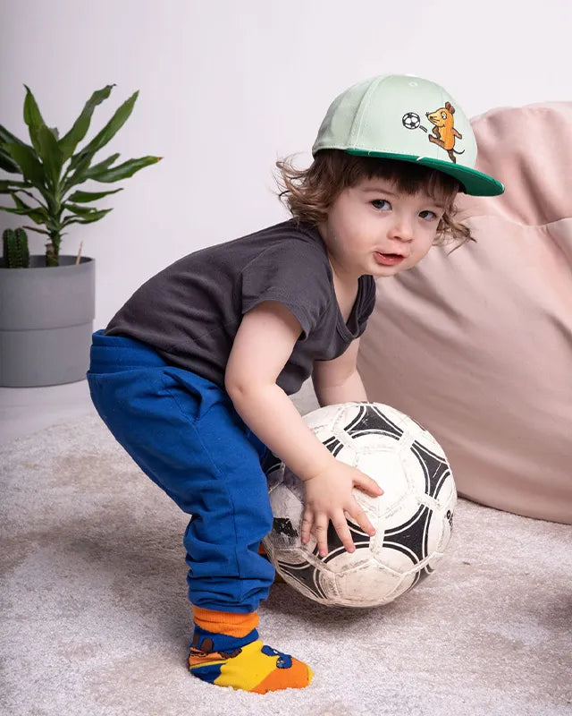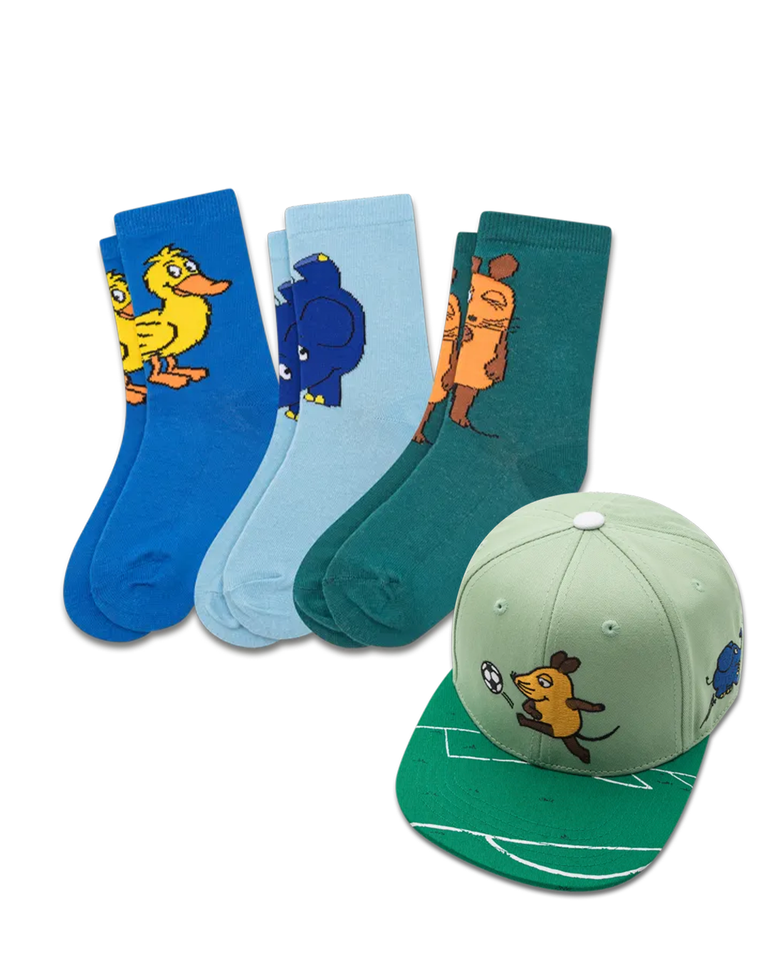 Die Snapback Maus Fußball bringt Spielfreude und Teamgeist auf den Punkt – mit der Maus in sportlicher Pose, bereit für das nächste Tor. Das frische Grün macht sie zum perfekten Hingucker für kleine Fußballfans. Ergänzt wird das Outfit durch das Große Freunde Socken-3er-Pack, das Maus, Elefant und Ente in fröhlichen Designs zeigt und jeden Tag Farbe ins Spiel bringt. Zusammen ist es das ideale Set für Schule, Freizeit und den nächsten Bolzplatz – bequem, robust und voller Energie.