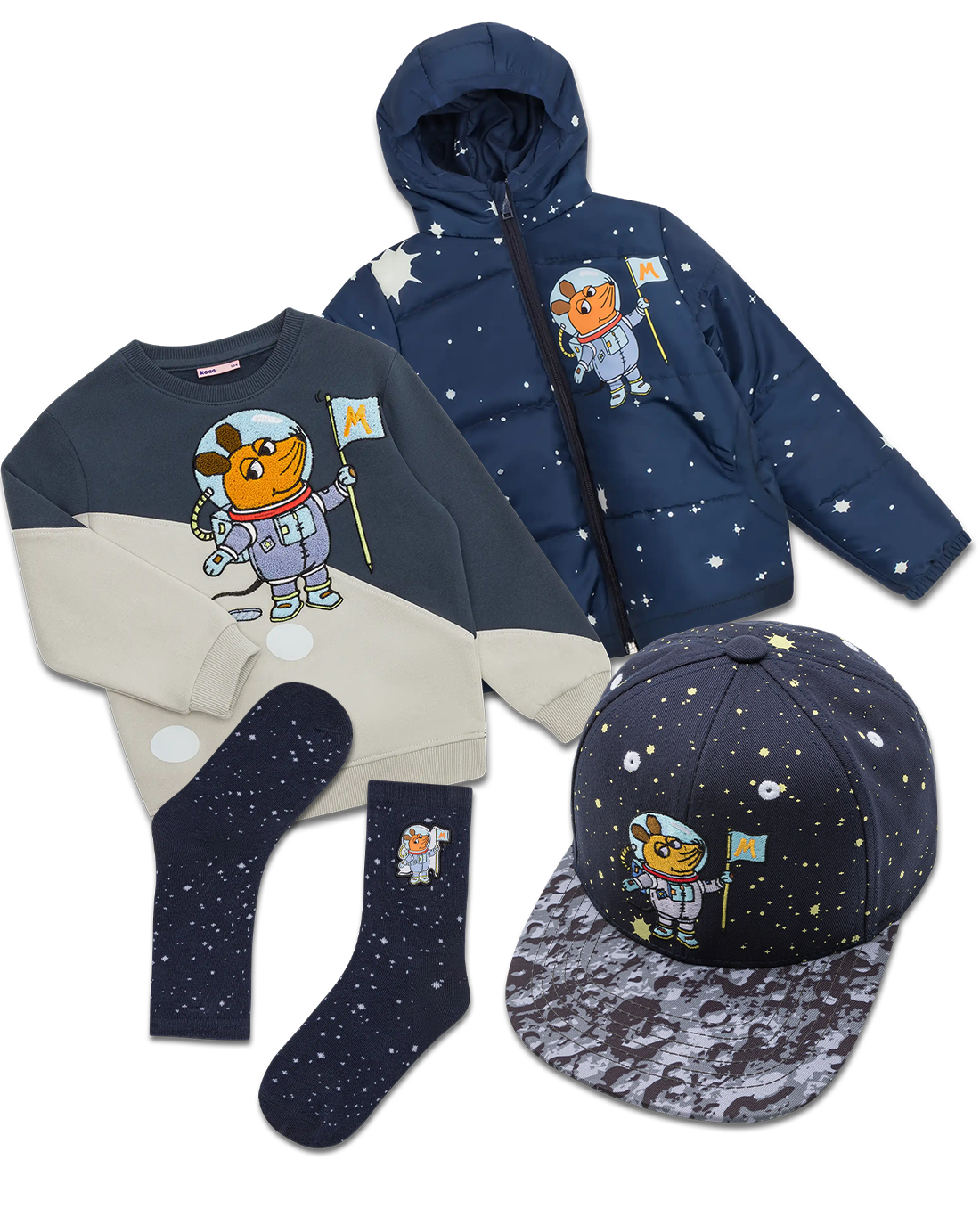 Ab ins All – Maus Space Snapback, Sweater, Jacke & Socken im galaktischen Komplett-Set.