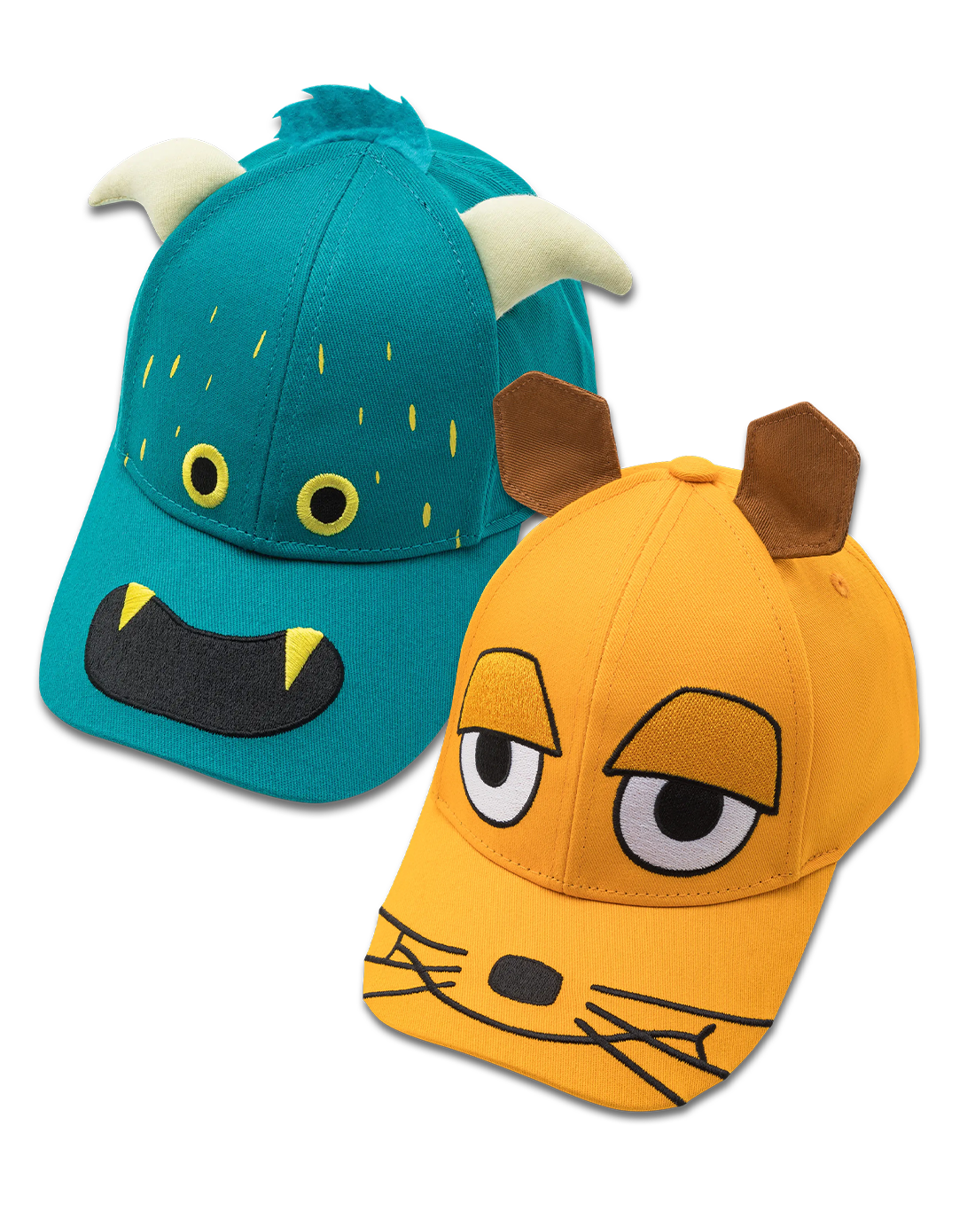 Zwei, die Laune machen – Die Maus & Mampf Maskottchen Kappe im fröhlichen Duo.