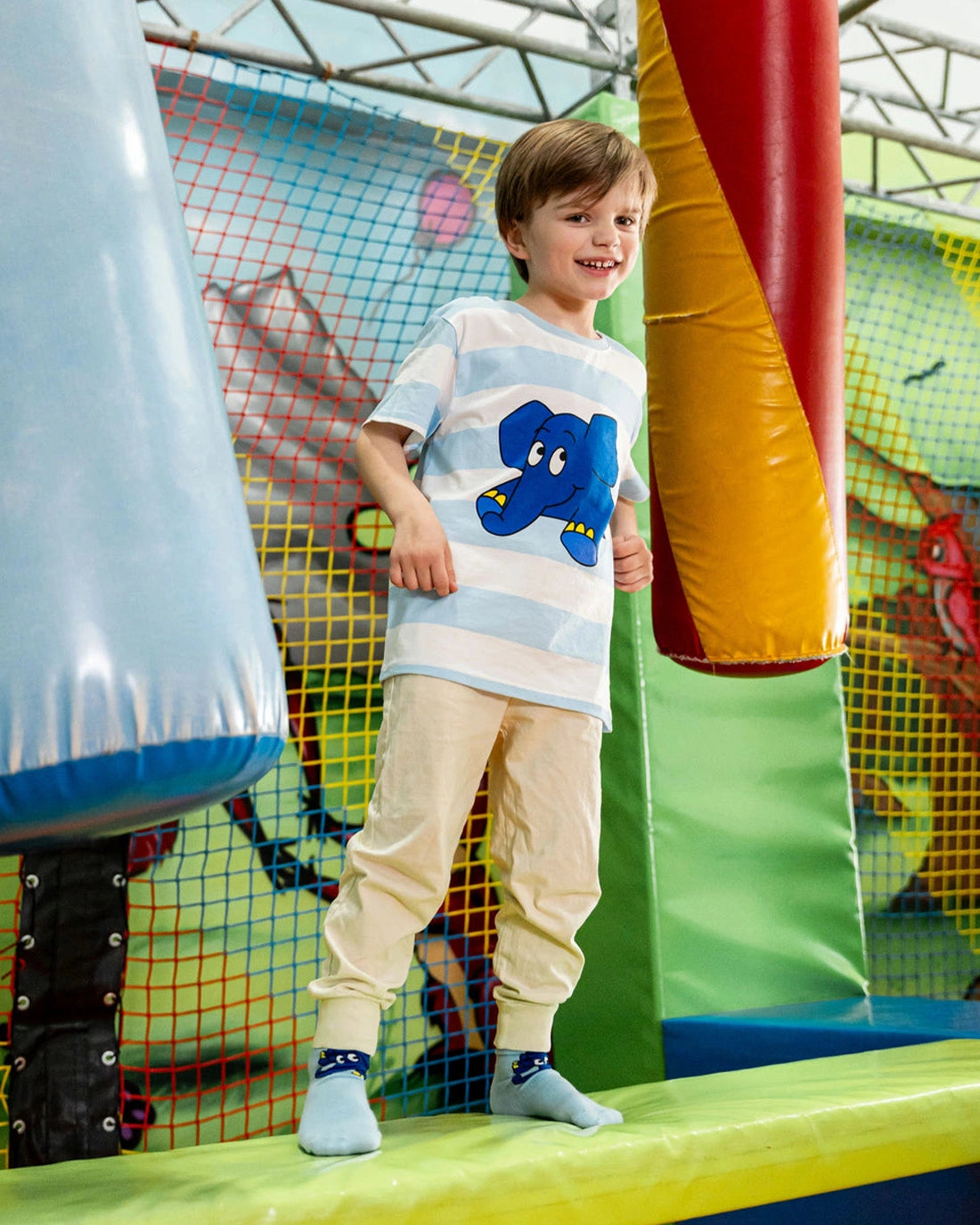 Das „koaa – Der Elefant „Guck Guck“ Stripes – T-Shirt“ bringt mit seinen hellblau-weißen Streifen und dem neugierigen Elefanten-Aufdruck ein fröhliches Highlight in jeden Kinderkleiderschrank. Der beliebte blaue Elefant aus der „Sendung mit der Maus“ lugt charmant hervor – ein verspieltes Shirt für Alltag und Abenteuer.