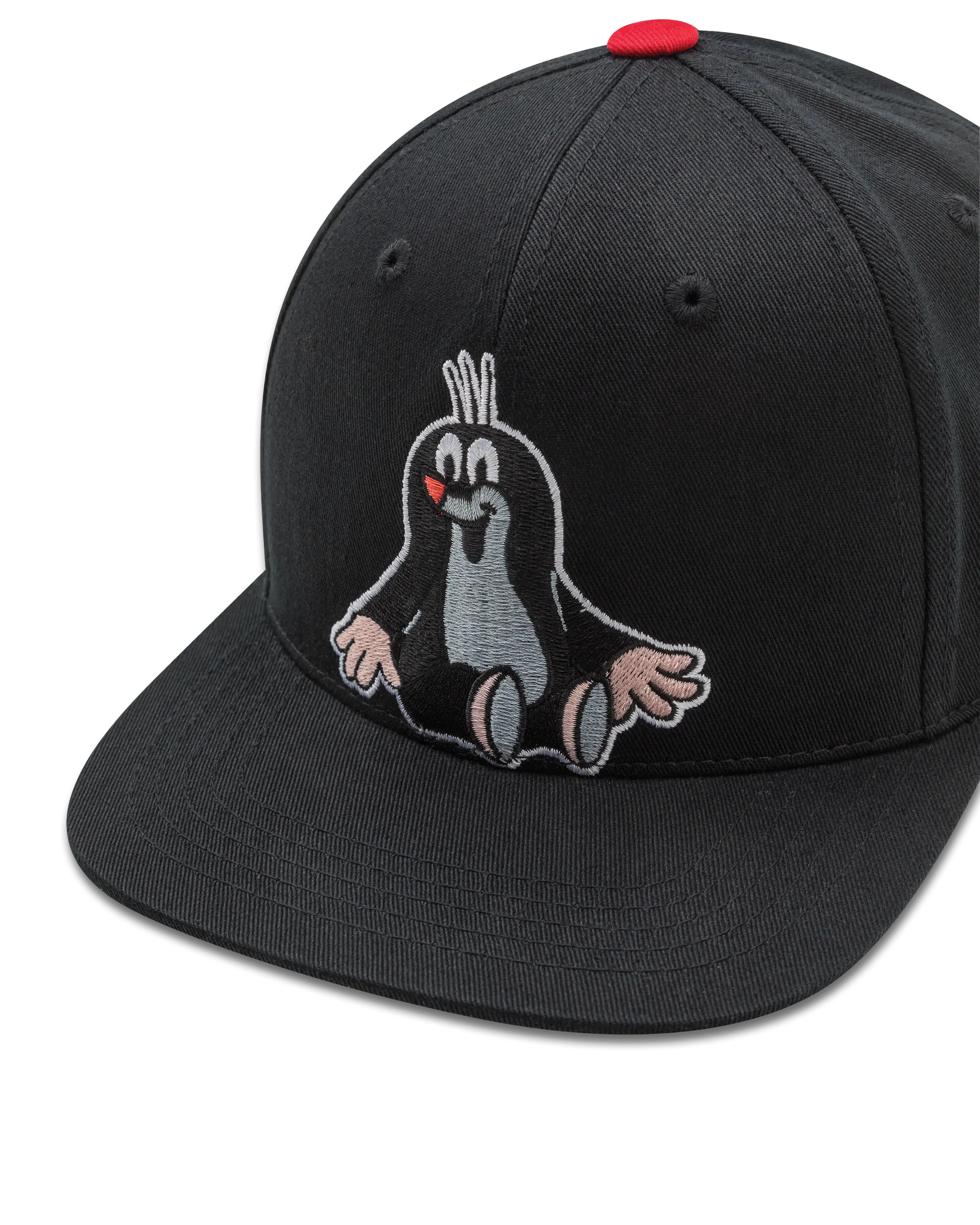 Schwarze Maulwurf Snapback mit 3D-Stick – niedlich, hochwertig und perfekt für kleine Fans des beliebten Maulwurfs.