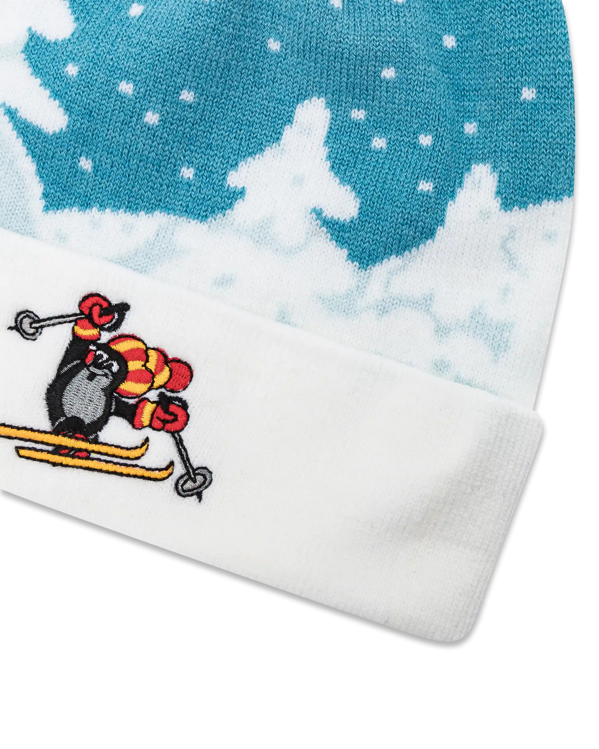 Die „koaa – Der kleine Maulwurf „Ski“ – Bobble Beanie“ in Blau und Weiß bringt winterlichen Spaß direkt in deinen Kleiderschrank! Auf der Vorderseite der Mütze ist der kleine Maulwurf fröhlich beim Skifahren zu sehen, was sie zu einem absoluten Highlight für Fans der beliebten Figur macht.
