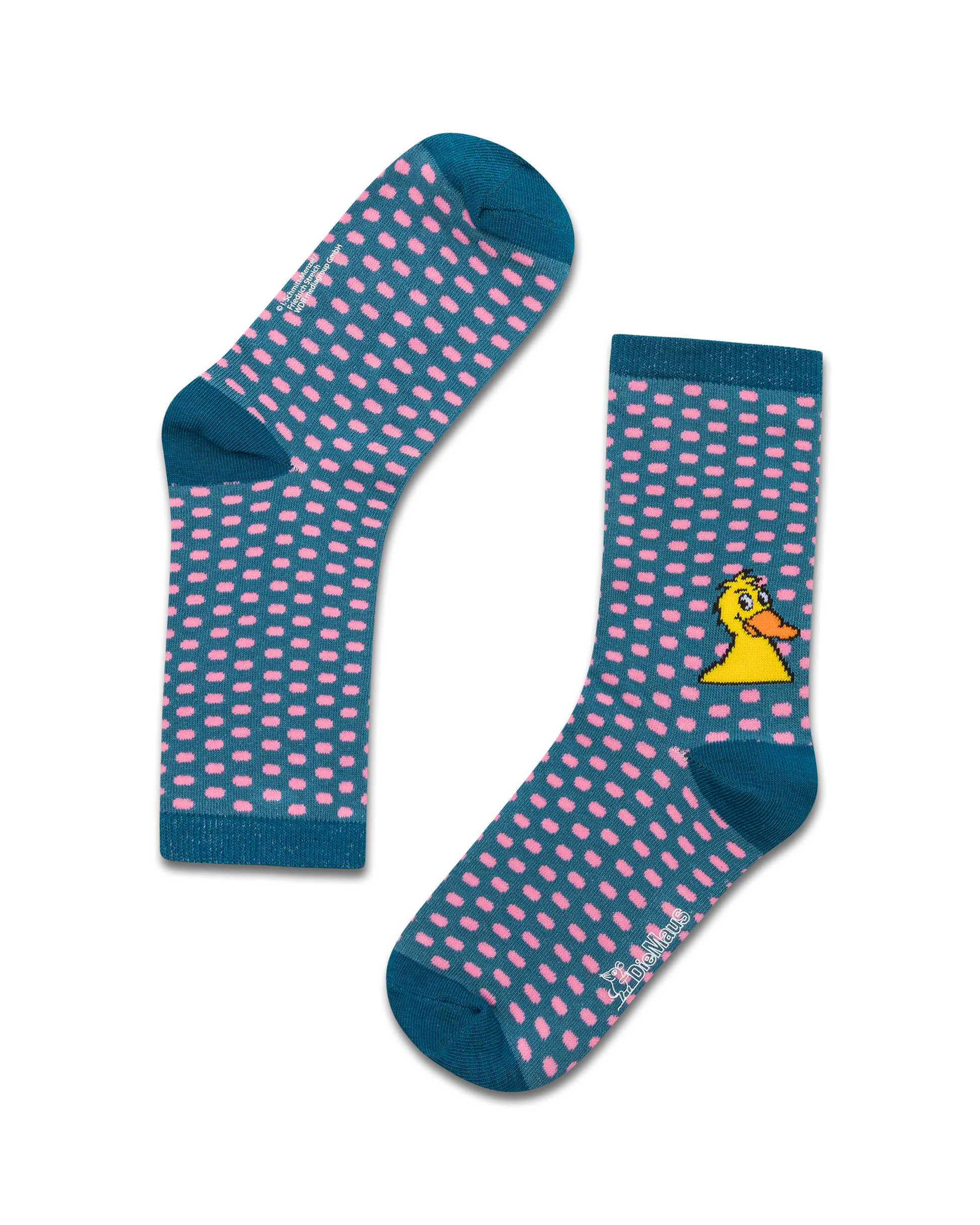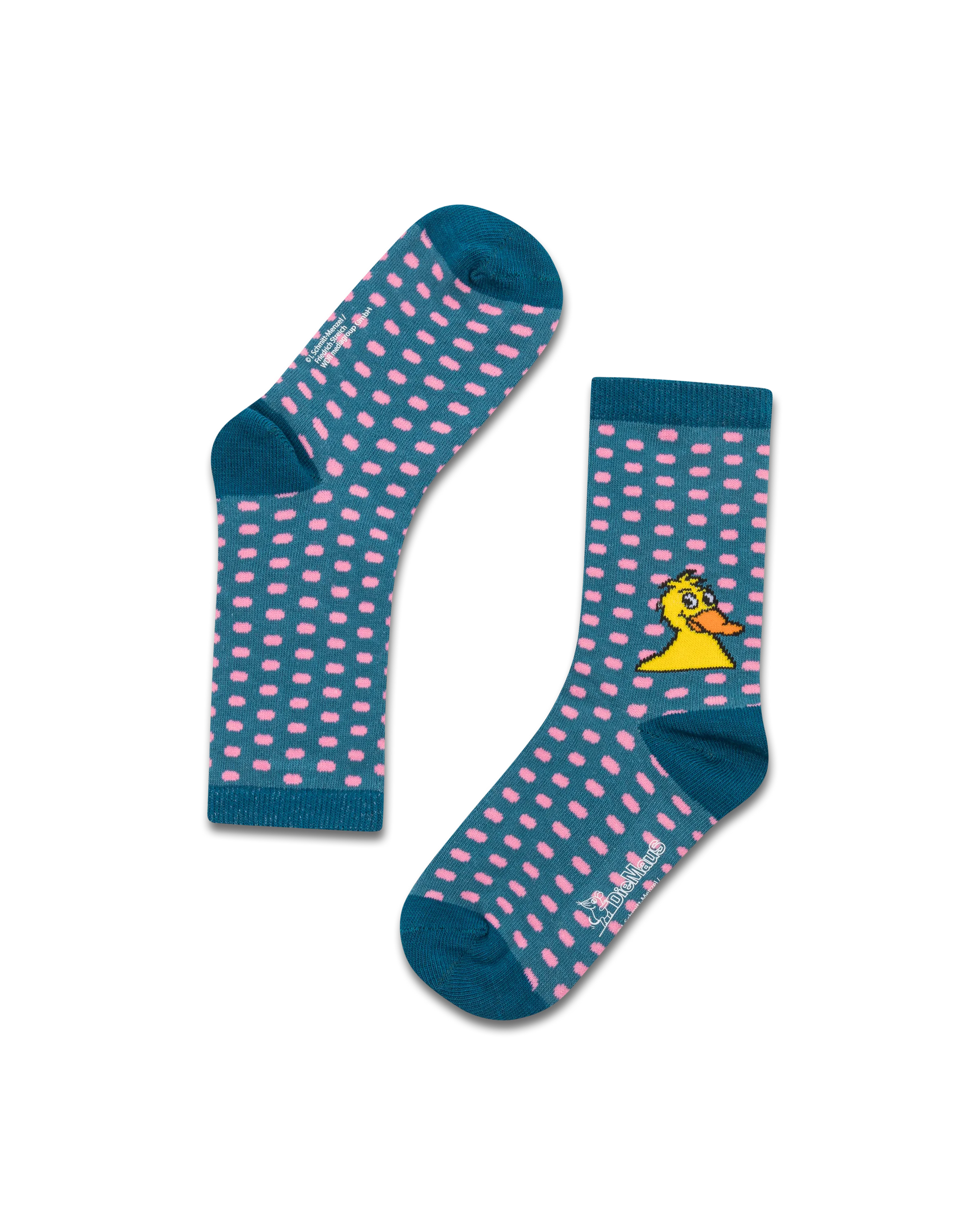 Türkis-rosa Ente-Socken mit Allover-Muster – verspielt, bequem und ideal für kleine Fans der fröhlichen Kultfigur.