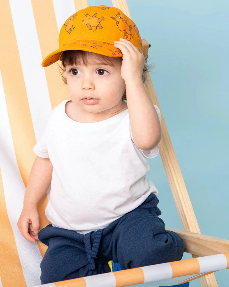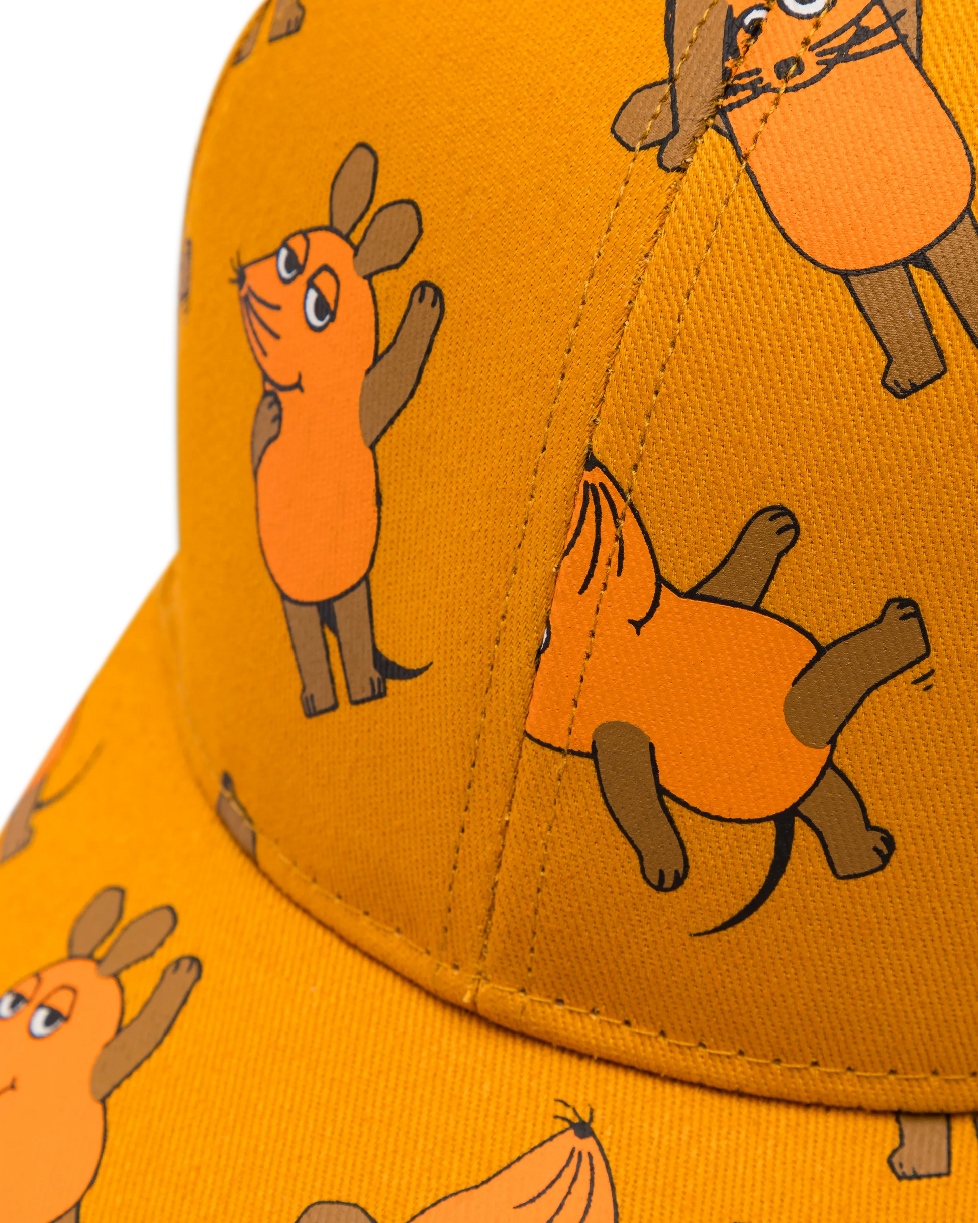 Orangenes Maus-Basecap mit Allover-Muster – fröhlich verspielt und perfekt für sonnige Tage kleiner Maus-Fans.