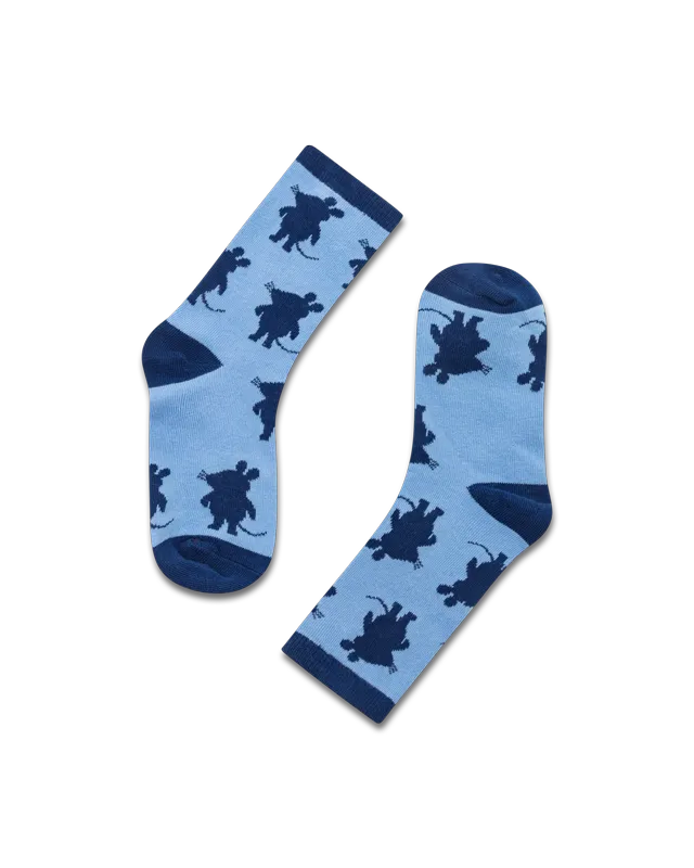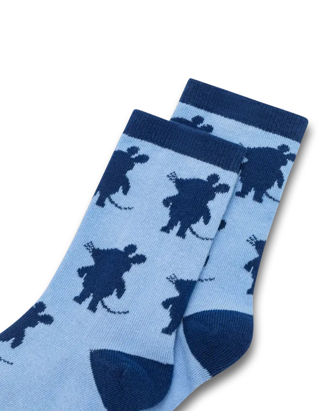Hellblaue Maus-Socken mit navy Silhouetten – bequem, stylisch und ideal für kleine Fans der beliebten Kultfigur.