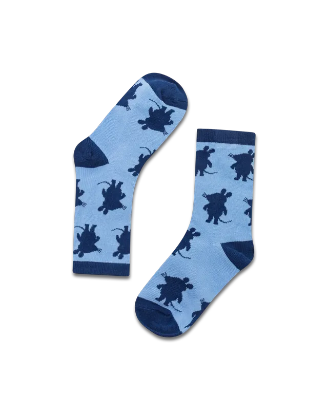 Die Maus "Silhouette" Socken in hellblau mit der Silhouette der Maus mehrfach in navy eingewebt.