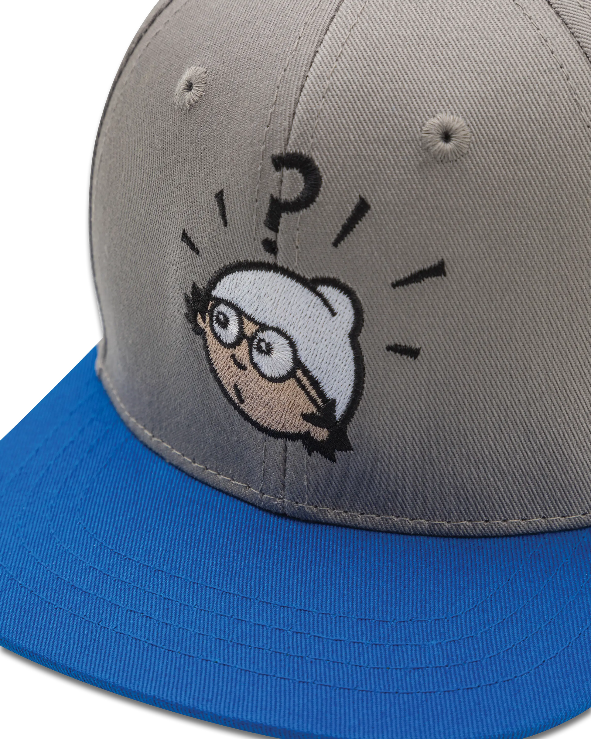 Stylische Snapback mit dem kultigen Mainzelmännchen Det als Stick auf der Front. Graue Krone trifft auf blauen Schirm – perfekt für Fans und Streetwear-Liebhaber. Offiziell lizenziert und limitiert.