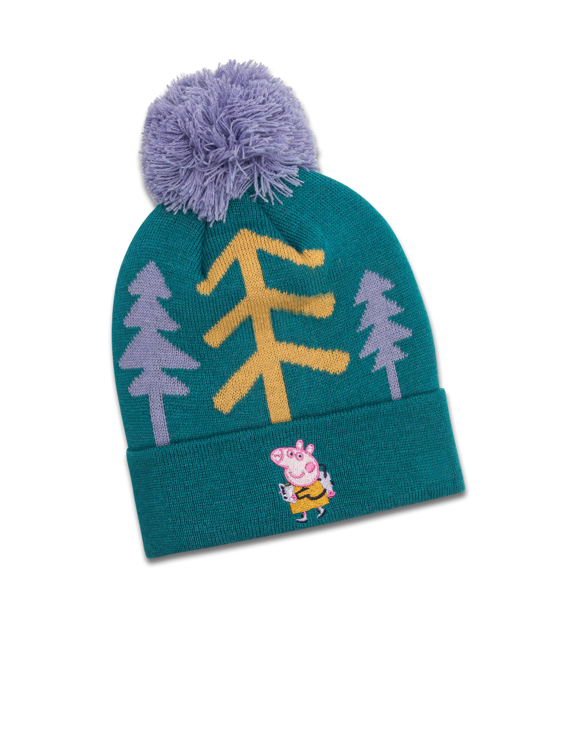 Die „koaa – Peppa Wutz „Forest“ – Bobble Beanie“ in einem frischen Grünton mit einem kuscheligen lila Bommel bringt nicht nur Farbe, sondern auch Abenteuerlust in die kalte Jahreszeit! Auf der Vorderseite der Mütze ist Peppa Wutz mit einem Rucksack und einem Buch in der Hand zu sehen, wie er lächelnd durch den Wald läuft. Dieses Design versprüht pure Freude und macht die Mütze zum perfekten Begleiter für kleine Entdecker.