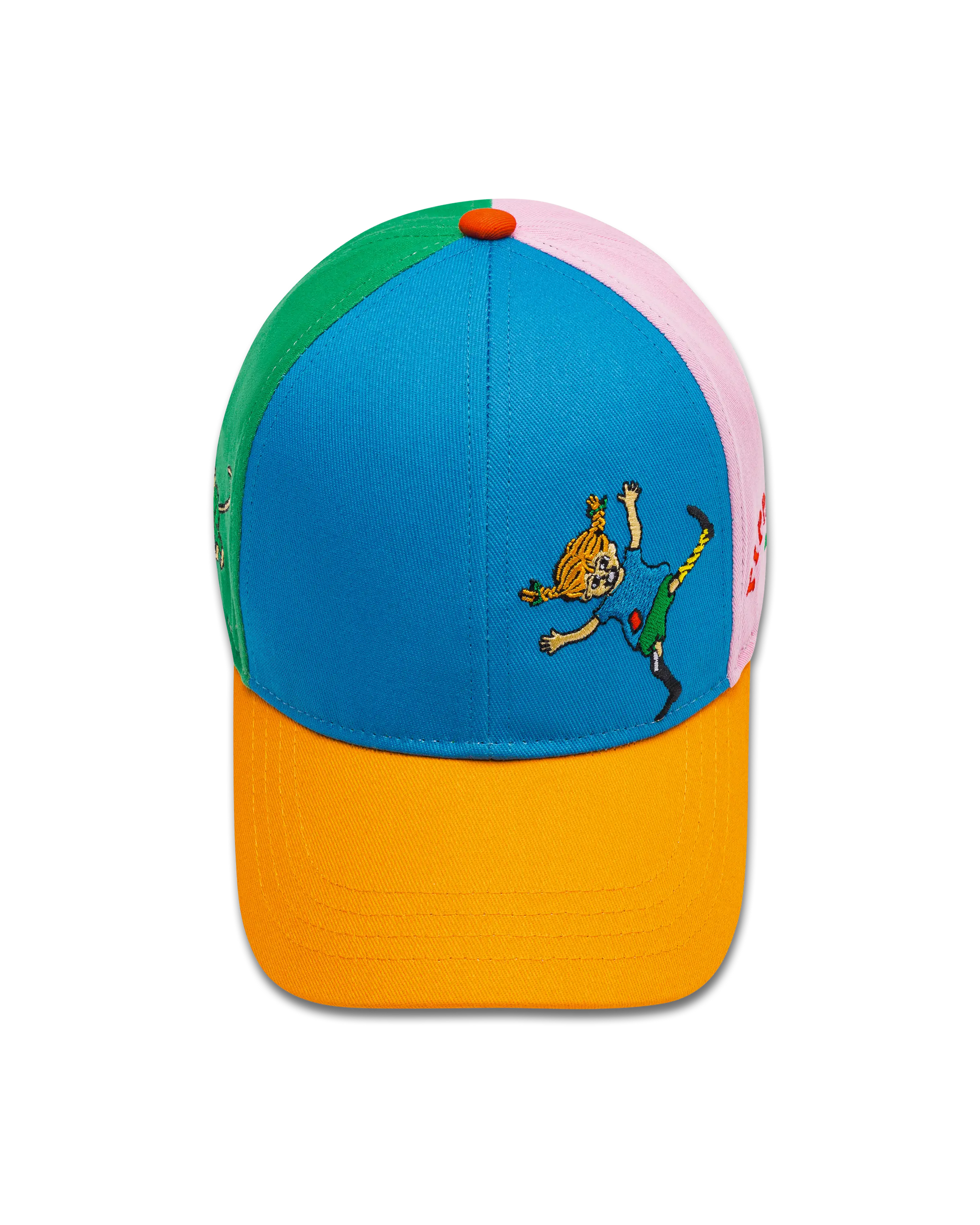 Kunterbunte Pippi Langstrumpf Basecap – farbenfroh verspielt und perfekt für kleine Fans voller Abenteuerlust und Sommerlaune.