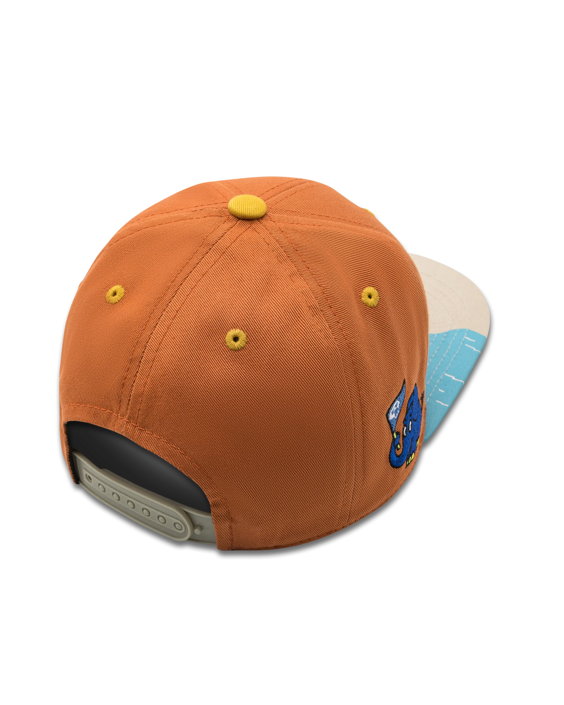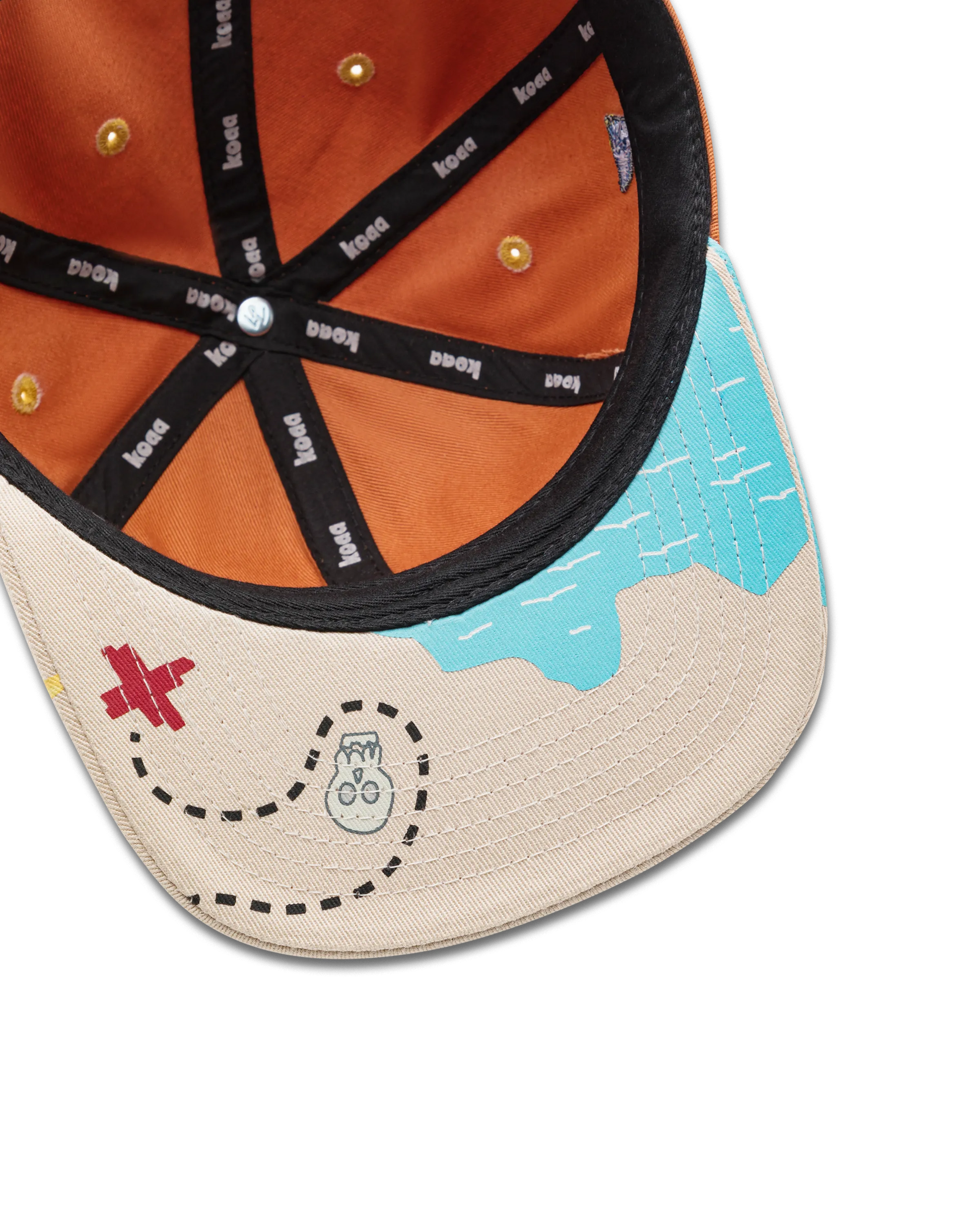 Die Maus "Pirat" Snapback in braun/beige mit einer Schatzkarte auf dem Schirm gedruckt. Die Piraten-Maus ist vorne fein gestickt.