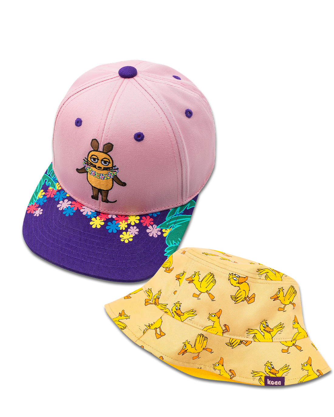 Aloha Sommer! Maus Snapback & Ente Fischerhut im fröhlichen Set für sonnige Tage.