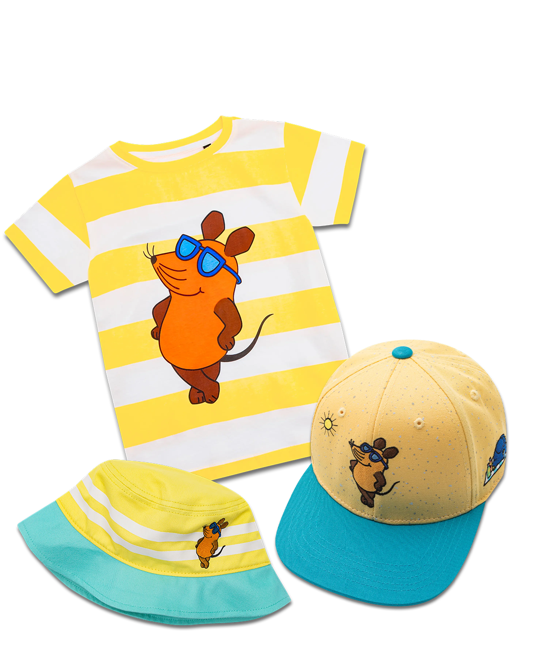 Sommer, Sonne, Strandfeeling – Maus Beachboys Snapback, T-Shirt & Bucket Hat im fröhlichen 3er-Set.