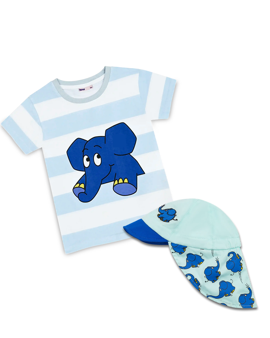 Spielspaß & Sonnenschutz – Elefant T-Shirt & Sun Cap im fröhlichen Set.